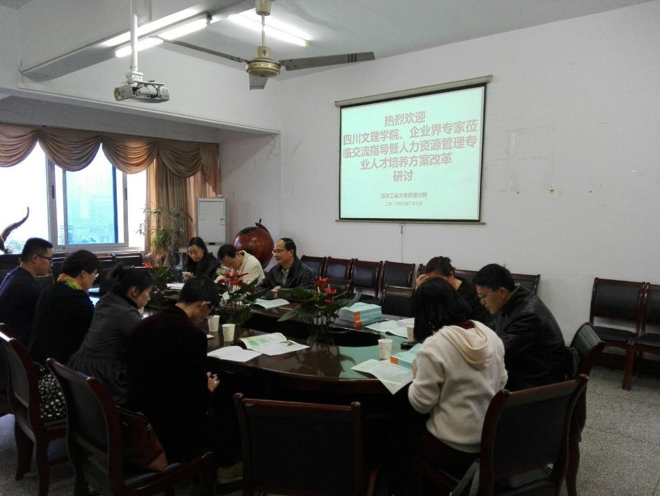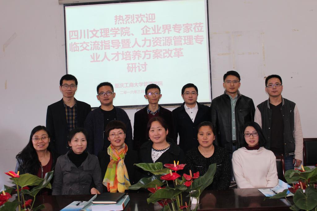 2016年03月23日上午9点“四川文理公司、企业界专家莅临交流指导暨人力资源管理专业人才培养方案改革研讨会”如期在明德楼3021会议室举行。本次研讨会借四川文理公司经济管理公司孟秋菊教授一行四人来管理公司学习交流之机,公司邀请重庆云日产业集团HR总监黄宏女士和重庆有保网络技术有限公司CEO赵川先生,由管理公司经理梅洪常教授主持,副经理王兰教授、党总支副书记尹建平、人力资源系田喜洲教授、何淑明教授、郑月龙博士、张明涛博士以及鄢清华老师等参加,进行了激烈的交流和研讨。