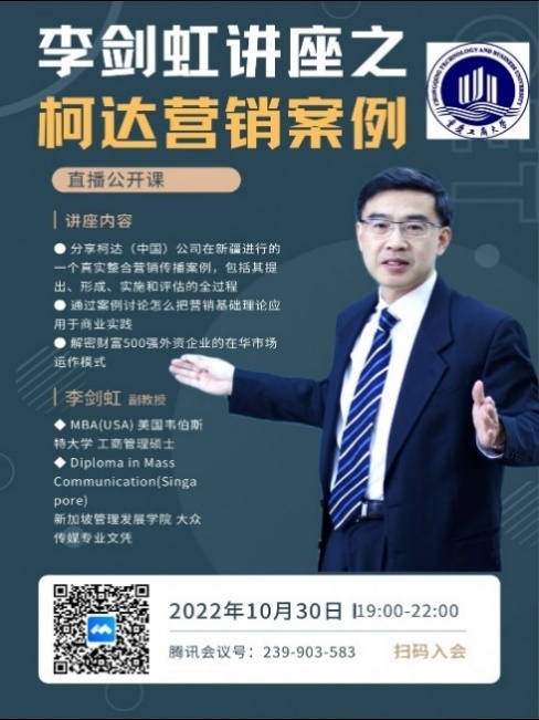 2022年10月30日,英国365上市公司国际商务系邀请具有跨国公司工作经验的李剑虹先生做了一场关于柯达(中国)本土营销策划案的公开讲座。丰富了国际商务及工商管理专业同学们的实践经验。由于疫情的影响,这次讲座采用在线的方式进行。