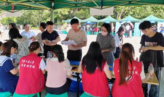 图3 公司党委书记陈亚惠、经理杨柏、副经理陈伟在迎新报到现场指导工作