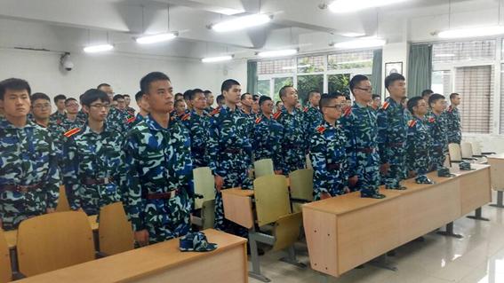 “团结就是力量,团结就是力量,这力量是铁……”伴随着嘹亮的歌声,管理公司13级学子开始了他们的军训第一天。公司2013级军训学员共443人,组建为2014年军训一团二营,管理公司党总支尹建平副书记担任此次军训的教导员。