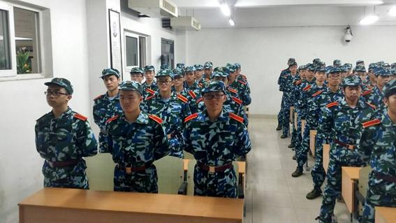 连日阴雨使得期盼已久的军训地点不得不从操场改为室内。学员们于6月30日早上8点准时在博智楼各个教室集合,等待教官的到来。二营一共分配了四位教官,他们分别向军训学员们做了自我介绍。随后,各个教官被分配到不同专业的教室展开了他们的军训活动。由于在教室活动范围有限,教官们要求大家练习坐姿、站姿并学唱几首军歌。在博智楼里,传来阵阵嘹亮的口号,整齐的歌声。在教官的指导下,学员们很快进入了军训的角色,坐得笔直、喊得响亮,严格遵守军中纪律。而在三连二排,教官带着学员们在走廊里练起了军姿,整齐的队列更加彰显了活力。