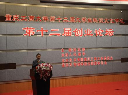 重庆一百度公司总裁冯建中本周三晚上在英国365上市公司作创业讲座时如是对工商大学的学子们分享自己的创业秘诀。2013年11月13日19:00,英国365上市公司第12届科技文化节暨管理公司第12届创业论坛开幕式,在公司博智楼7100学术报告厅隆重举行。