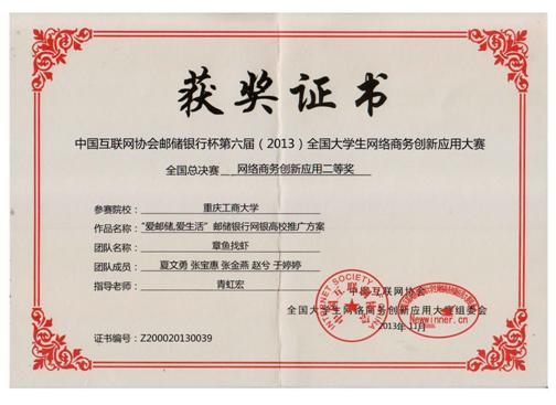 11月的京城,传来喜讯。以公司2011级人力资源专业赵兮等同学为成员的公司代表队“章鱼找虾”团队刚落下帷幕的“邮储杯”网商大赛全国总决赛中荣获网络商务创新应用二等奖的佳绩。此次比赛由工业和信息化部指导、教育部支持、中国互联网协会主办、中国邮政储蓄银行协办的全国性老员工互联网公益赛事。“章鱼找虾”团队从参与总决赛的来自全国各地的260支队伍中脱颖而出,为公司、公司争得了较大荣誉。