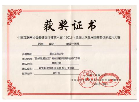西南赛区获奖证书