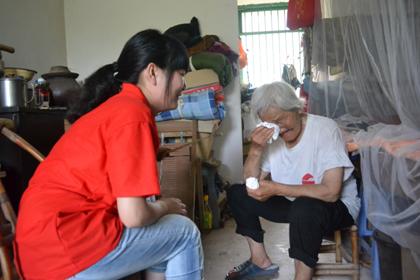 节目表演结束后,几位实践服务团成员陪着老人回到屋里摆起了“龙门阵”,并协助他们收拾房间。帮扶实践服务团成员们的谦敬感动着老人们,不少老人流下了感动的泪水。尤其是杨人方老人,年近九旬的她的身体每况愈下。当实践服务团成员马小铜陪杨奶奶聊天并拿着扇子为她轻扇的时候,杨奶奶感动得热泪盈眶。她说活了这么大把年纪也没从没梦想到有这帮来自重庆城的老员工们会像晚辈一样来看她。