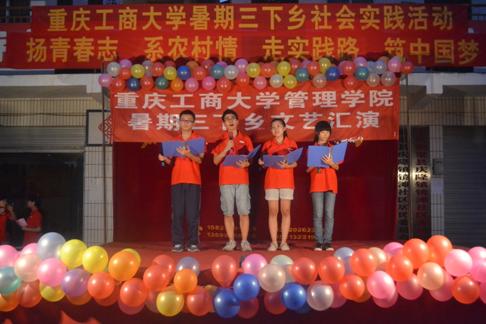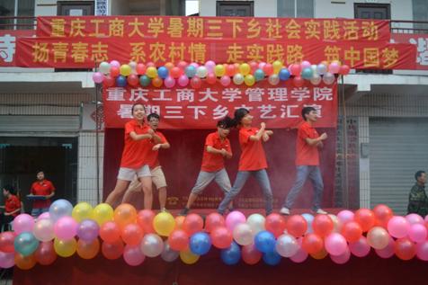 这是实践服务团在铜梁县庆隆镇文艺汇演所体现出的等式。7月18日晚7点,管理公司“三下乡”老员工教育帮扶实践服务团文艺汇报表演在庆隆镇社区广场顺利举行。