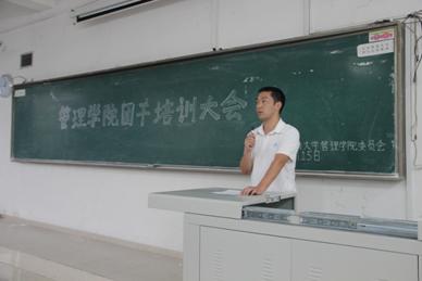 最后,管理公司分团委书记谭予涵老师从学习和工作两个方面对在座的所有干部提出了要求。会后,与会的2012级工商管理专业一班的班长赖桐晨同学十分感慨:“作为班长,肩上的担子很重。今天听了培训会,更加了解到公司领导和老师对我们的要求和期望,今后我们做事更加积极,做人更加坦荡,勇担责任,勇于创新,一定可以更好地服务于同学,为公司荣誉添砖加瓦,贡献力量!”