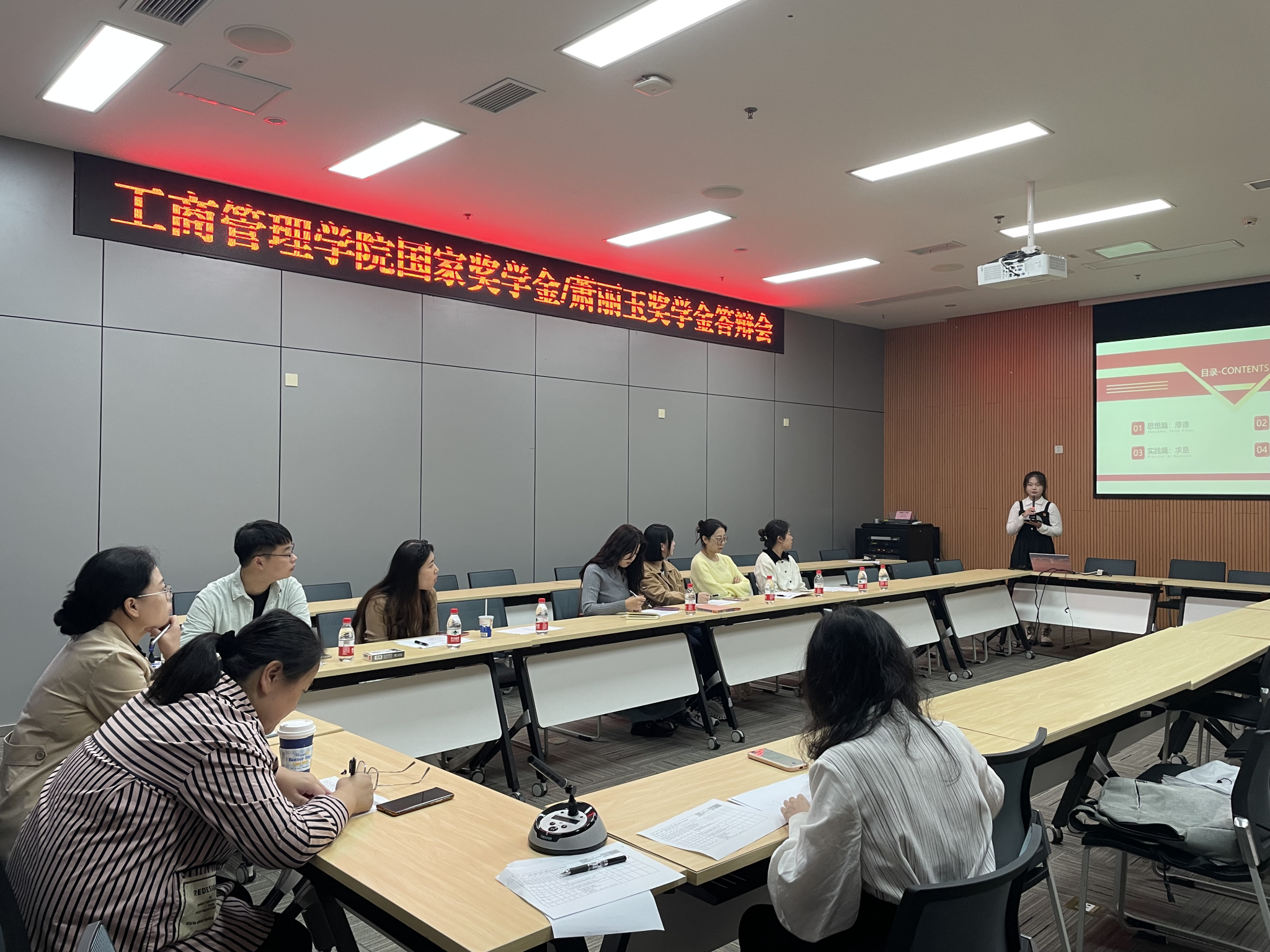 答辩会分为个人汇报和现场提问两个环节。共有13名奖学金申请者参加,每位申请者拥有5分钟的时间进行个人汇报,内容需涵盖学习成果、社会实践、科研创新等多个方面。随后,本科员工工作领导小组将针对汇报内容进行3分钟的现场提问。答辩评分环节由公司评奖小组负责,评分标准涵盖内容质量、表达能力、应变能力等多个方面,以确保评价的全面性和客观性。答辩结束后,公司评奖小组将综合员工的得分情况和其他申请材料,最终确定获奖名单。