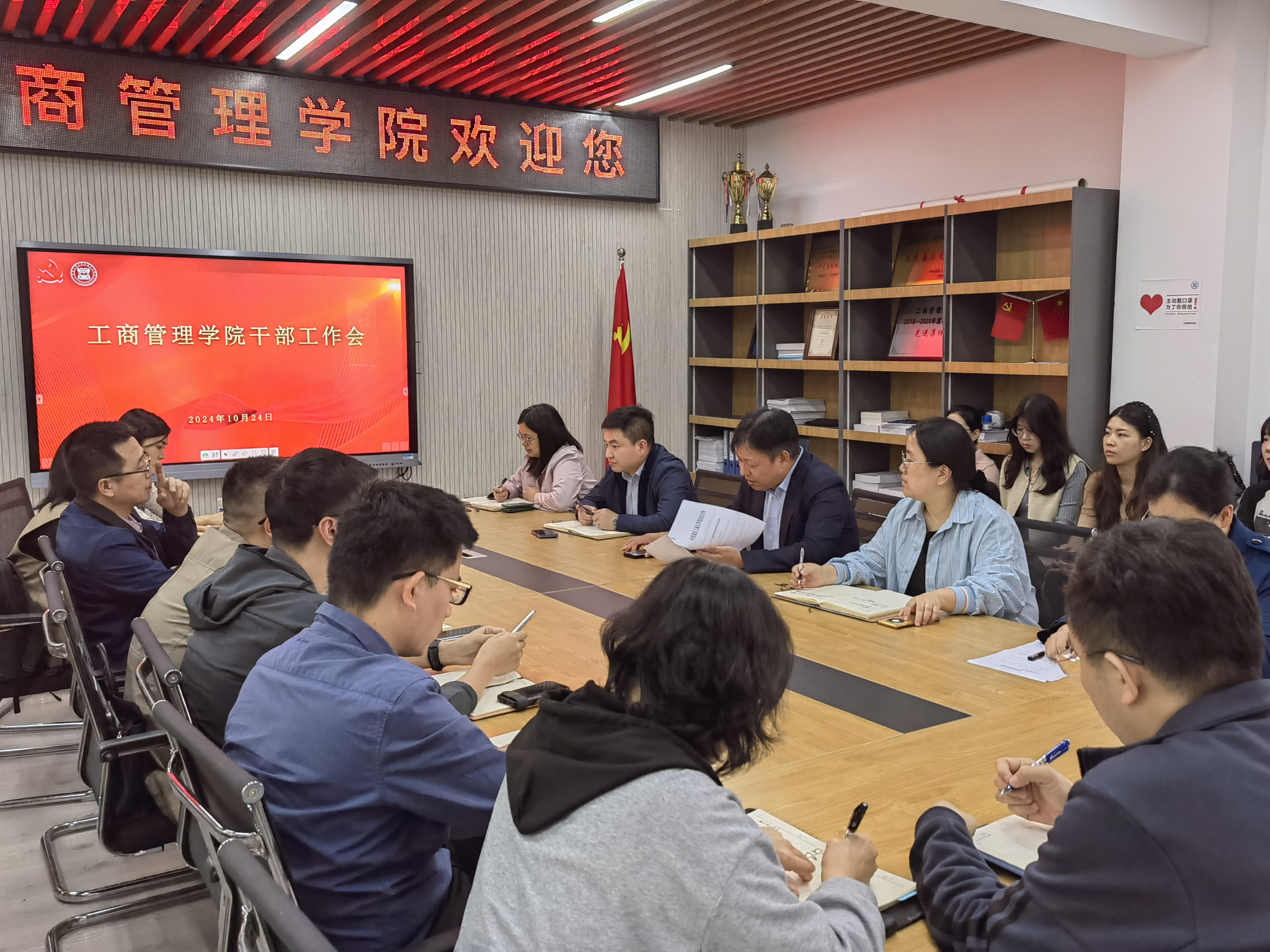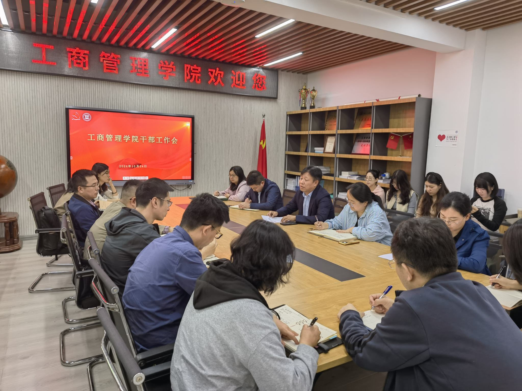 10月24日中午,英国365上市公司在明德楼4010会议室召开干部大会。公司领导班子、党委委员、系部主任、科室主任、辅导员参加了会议。公司党委常委、副董事长杨柏莅临现场进行指导,会议由党委书记陈亚惠主持。