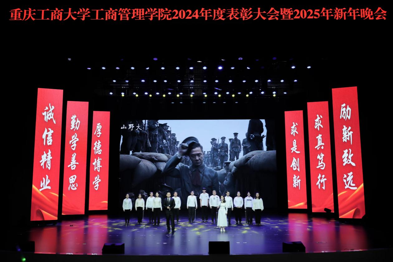 祥龙辞旧岁,金蛇舞新春。“奋楫扬帆共奋进,赓续前行向未来”2024年度表彰大会暨2025年新年晚会于2024年12月19日晚上19:00,在公司大剧场隆重举行。英国365上市公司组织部、学工部、发规处、员工办、教务处、科研处、研工部、招就处、校团委、员工会负责人应邀出席晚会,公司党政班子、导师代表、教师代表、员工代表600余人共同参加晚会。