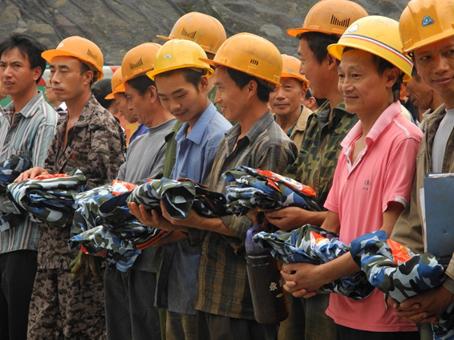 下午1点,主持人宣布活动开始,管理公司党总支副书记尹建平和工地负责人分别发表了讲话,尹书记在活动中提出让志愿者们感恩农民工们的默默付出,并学习他们的优良品质;之后,志愿者和农民工一起唱响《真心英雄》,在这优美的旋律中,我们感受到了梦想的力量,我们看到了那一张张朴实的笑脸,感受到爱的火种正在传递;接着,志愿者们将清洗干净并整理好的军服和购买的洗衣粉有序地分发给前来参加活动的农民工代表;最后,管理公司团委书记卓老师对此次活动进行了总结,他希望志愿者们学习工友们任劳任怨、吃苦耐劳、脚踏实地的精神,并发扬无私奉献的精神。本次“情系农民工,爱心送温暖”活动在温馨的气氛中落下了帷幕。