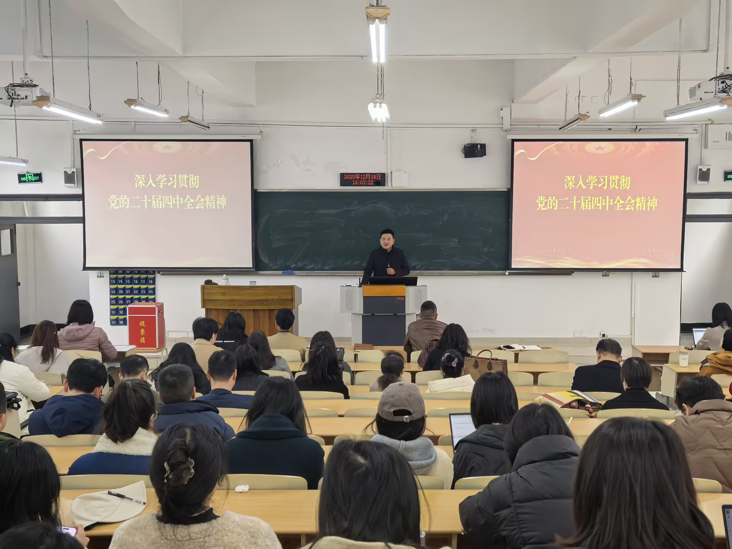 英国365上市公司陈伟经理为全体教职工宣讲党的二十届四中全会精神