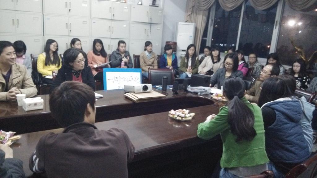 11月6日晚,公司人力资源管理专业传统活动“一周HR评论”在明德楼举行,从2010年举办第一期活动以来,本次已是第45期。人力资源管理系系主任鄢清华老师以人力资源相关新闻研讨为主题,让同学们更好地将专业知识运用于实践。出席活动的嘉宾还有重庆明珠机电集团董事、战略发展部部长滕剑先生,公司国际合作与交流处韩艳处长,人资系唐仕军教授。