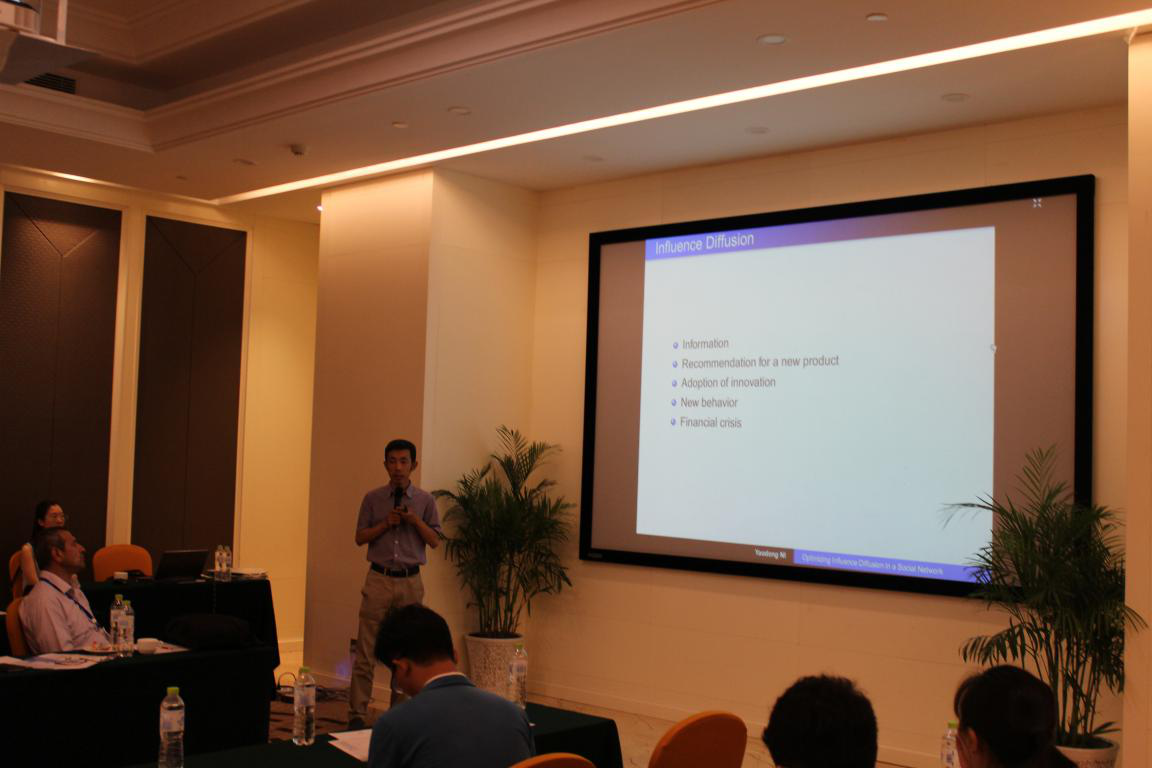 对外经贸大学的倪耀东教授介绍了优化和相应的计算方法如何影响社会网络的扩散过程。主要从线性阈值模型、独立级联模型、增量机会模型等三个方面进行计算。