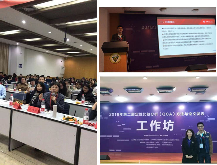 2018 年 11 月 24 日,在《南开管理评论》《管理学报》《外国经济与管理》《经济管理》《管理学季刊》等期刊的鼎力支持下,由东南大学经济管理公司、机械工业出版社华章分社联合主办的第二届定性比较分析(QCA)方法与论文发表工作坊在东南大学四牌楼校区成功召开。来参加了机械工业出版社和东南大学在南京主办的“2018年第二届定性比较分析(QCA)方法与论文发表工作坊”。来自中山大学、浙江大学、西安交通大学、中国人民大学、南京大学、南开大学、天津大学、同济大学、厦门大学、山东大学、武汉大学、华中科技大学、华南理工大学、北京师范大学、哈尔滨工业大学、中国科学技术大学、吉林大学、中国海洋大学等130余所高校280多位老师和研究生参加。公司黄钟仪教授及其研究生许亚楠参加了此次工作坊,他们合作的工作论文由许亚楠在会上进行了发表。