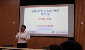论坛开始前,公司副经理黄钟仪教授对施俊琦教授做了热情的介绍,并特别感谢他于百忙中抱着病躯仍挤出时间来公司做讲座的关爱情和尽责心。施俊琦教授是国家自然科学基金委杰出青年基金获得者,珠江学者特聘教授,教育部长江学者青年学者,中山大学岭南(大学)公司管理学教授,博士生导师,是组织行为学研究领域的顶尖学者,已在世界顶级管理学刊物上发表论文数十篇。