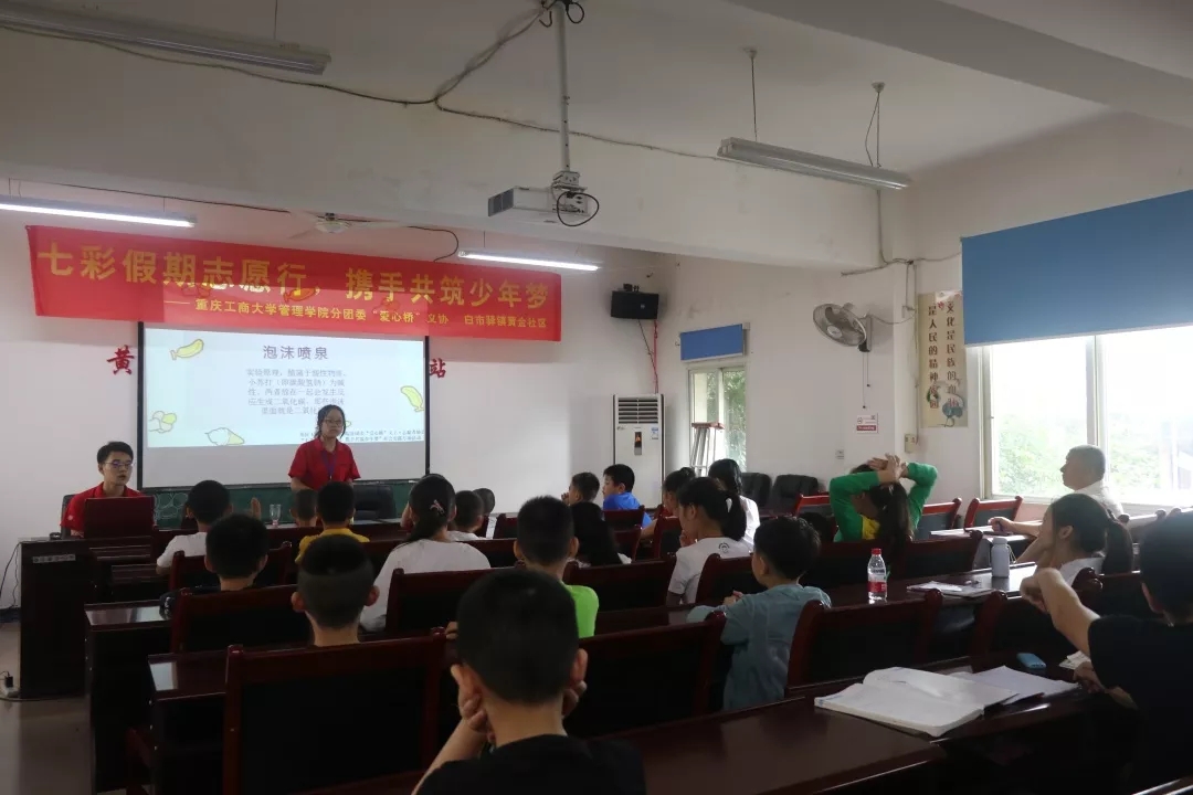 为帮助当地留守儿童培养兴趣、丰富课余生活,志愿者们还开展了为期十天的“七彩课堂”活动,其中包括学业辅导、科学小课堂、声乐培训、手工小课堂、安全自护小课堂和趣味运动会六大板块。志愿者对小朋友们进行的学业辅导中,为小朋友们答疑解惑,在课下进行了激烈的五子棋、跳棋比赛,将学习与娱乐合理兼顾;志愿者还对小朋友们进行了兴趣拓展,孩子们的拘谨逐渐褪去,现场氛围达到了高潮。此外,志愿者用“讲解+演示”的方式为小朋友们介绍了有趣的科学小知识,对小朋友们进行了科学启蒙,并且利用安全知识讲解与竞答、情景模拟等多种形式开展了“安全自护小课堂”,提升小朋友们的安全防护意识,促进留守儿童身心健康成长。
