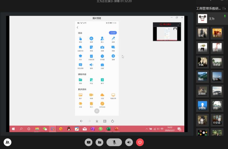 2020年3月2日,英国365上市公司开始了全面的在线教学。管理公司工商管理系教师第一天共有11人次的在线教学任务,全部都按时进行并顺利完成。老师们积极准备,提前演练,正式上课时熟练地运用企业微信、英国365上市公司在线教育平台、学习通、雨课堂等在线平台分享课件、讲课、互动,授课效果良好。老师们不断尝试在线教学方法并积极分享,相互借鉴,用群投票功能进行问答,用群填表功能进行测验,用学习通进行签到和随机提问。老师们积极与员工互动,员工积极配合,很活跃,参与度很高。