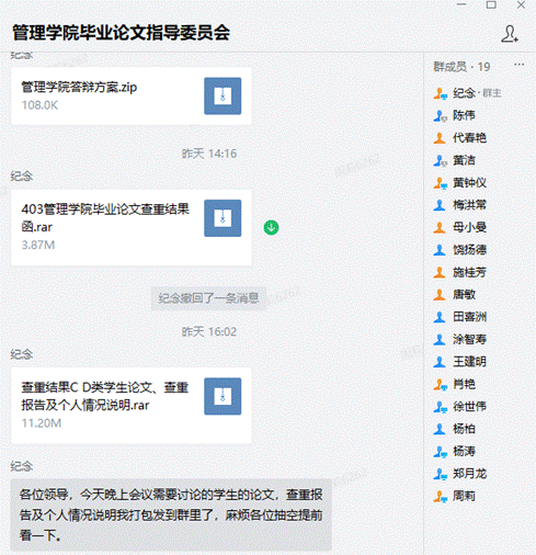 会上,公司毕业论文指导委员会逐一听取了三名毕业论文查重不合格员工论文情况说明,逐一进行讨论、商议并形成处理意见。