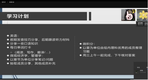 第一阶段,夏梓洋同学做学习小组活动总汇。首先简介了学习小组的组成原则及组长的日常管理情况;其次以“技术案例+补作业篇”“细心指导篇”“积极打卡篇”“耐心直接篇”“患难以共篇”“快乐讨论篇”“鸦雀无声+日常划水篇”的分类,展示了12个小组的活动简况。