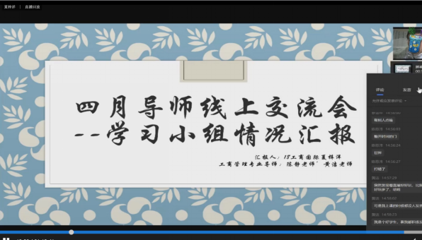 春暖花开,又是人间四月天,不知不觉间同学们已踏实地度过了两个月的线上学习时光。为了以更生动有趣的形式开展线上课余时间的学习,工商管理系新生专业导师陈静教授和黄洁博士、19工商管理导航学长夏梓洋以及2019级工商管理专业员工于2020年4月24日开展了以“在线教学交流——学习小组活动分享指导”为主题的专业导师活动。