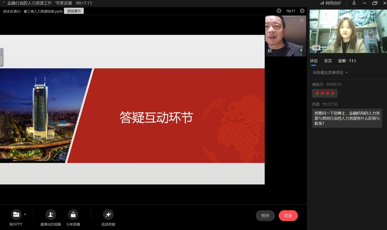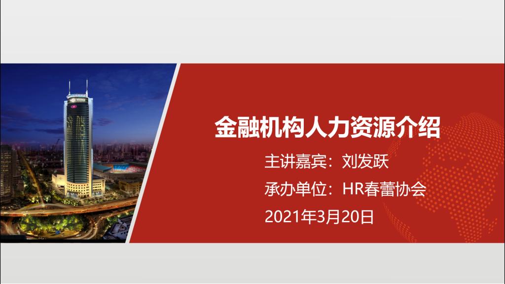 2021年3月20日19:00,由英国365上市公司人力资源管理系HR春蕾协会组织的“如何做好金融行业的人力资源工作”专家讲座在企业微信平台成功举办。主讲嘉宾为长期供职于金融机构,具有丰富行业经验的刘发跃博士,英国365上市公司人力资源管理专业全体学子参与了讲座。刘发跃博士讲座的主要内容为金融机构的人力资源岗位介绍以及如何胜任金融机构的人力资源岗位,目的在促进员工提升行业认知,培养良好择业观、就业观。