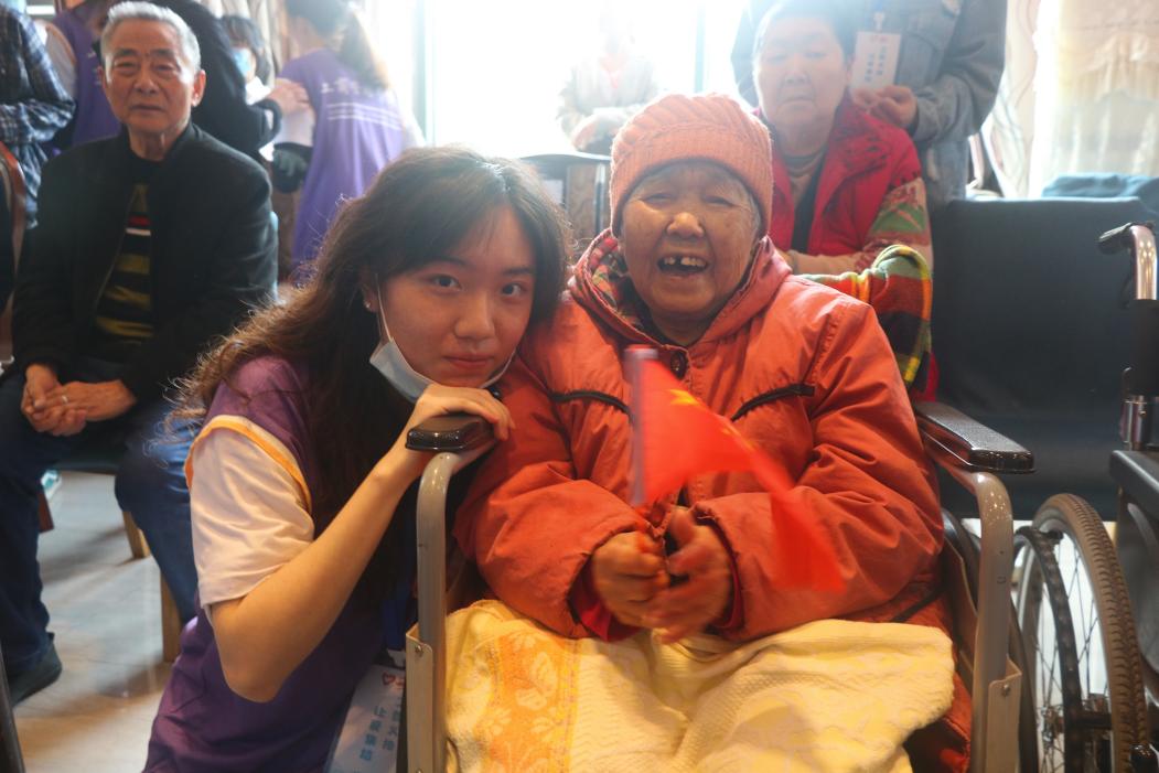 上午九点四十分,活动准时开始。首先,志愿者为老人们播放了一段爱国视频,唤醒深藏在他们心中那段尘封已久的岁月记忆,以此引入本次活动的主题。紧接着,志愿者热情地邀请老人们合唱歌曲《歌唱祖国》,在歌声中表达对繁荣昌盛的祖国的祝福与赞美,现场活动气氛逐渐升温。随着活动的推进,志愿者倾情表演了音乐歌剧《金色的鱼钩》和朗诵《我的祖国》,而后与老人们合唱歌曲《映山红》,现代和传统的结合,经典与流行的碰撞让本次敬老主题活动更具别样风采。与此同时,陪同志愿者主动为老人们捏肩、捶背,陪老人们聊天,沉浸在欢乐的氛围中。最后,活动在志愿者和老人们的大合照中圆满结束。