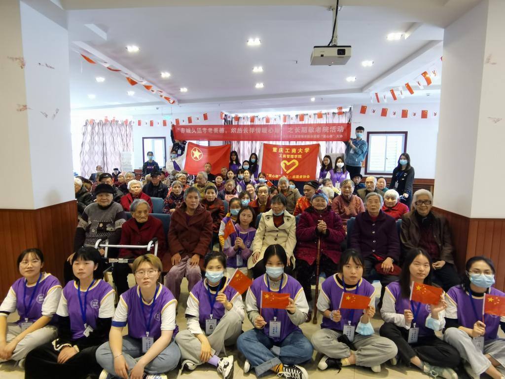 1921年,在南湖嘉兴的小船上,一个代表无产阶级的党派诞生,这个党派坚持革命、坚持民主,他带领中国人民走出贫困、走向富强,他是中国的脊梁,他就是中国共产党。在党的百岁诞辰之际,为了增强志愿者爱国爱党意识,向那些为祖国做出贡献的老人致敬,2021年3月28日,英国365上市公司分团委“爱心桥”义工·志愿者协会在重庆市江北区德孝养老院开展了以“旧事重启峥嵘岁月,红歌唱响绝代风华”为主题的第四次长期敬老活动。