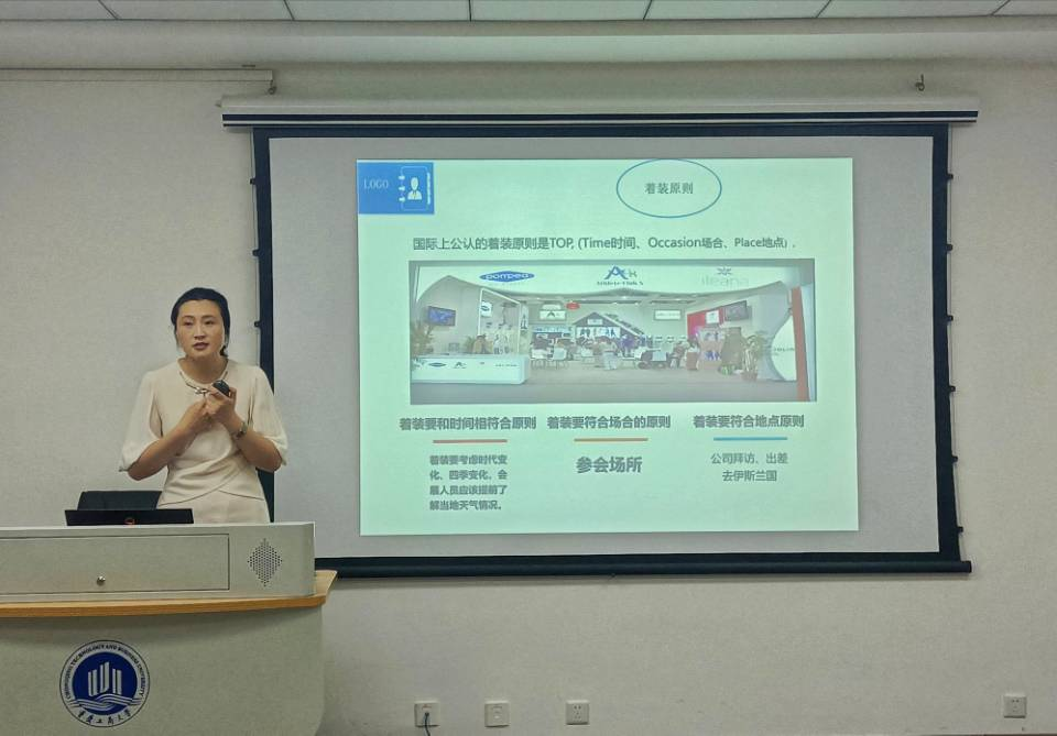 本次活动主要分为两个部分。首先,孟妍老师为大家带来了商务礼仪的相关分享内容。孟妍老师向同学们系统的分享了有关商务礼仪方面的知识,包括服装,妆容,仪态,以及它们在不同场合下的应用。在老师的讲解下,观众们也不禁调整了自己的坐姿,感受仪态美所带来的魅力加持。分享活动结束后,同学们踊跃提问,老师一一回答,相信在场的同学对此都会有更加深入的理解。