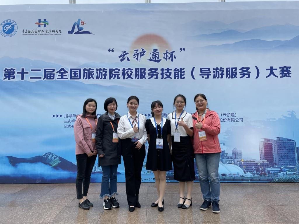 2021年5月13-16日,由中国旅游协会教育分会主办的“云驴通杯”第十二届全国旅游院校服务技能(导游服务)大赛在青岛成功举办。公司选拔的三名同学在此次大赛中均表现优异,其中,19旅管一班王辰飏、肖鑫浩获得中文组三等奖,19国际旅游与酒店管理班廖雪凝获得英文组三等奖。公司高度重视此次比赛,组织得力,团队获得优秀组织奖。