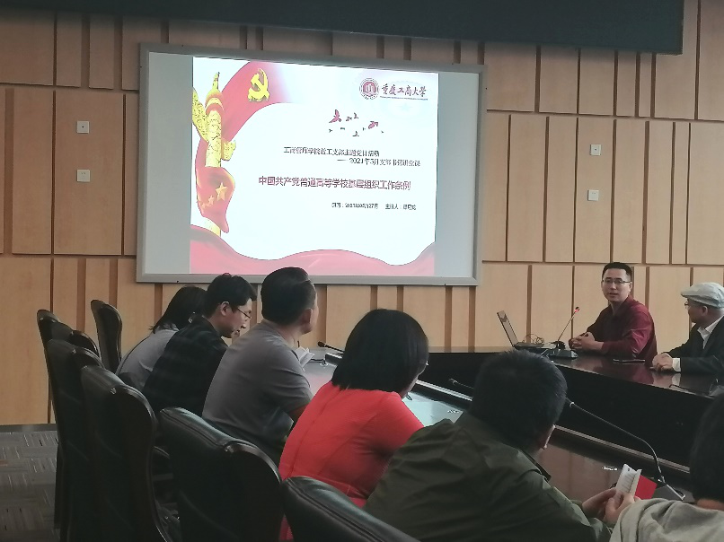 首先,由郑月龙同志对《中国共产党普通高等公司基层组织工作条例》进行了讲解,包括工作条例的“总则”、“组织设置”、“主要职责”、“党的纪律检查工作”、“党的队伍建设”、“干部和人才工作”、“思想政治工作”、“对群团组织的领导”、“领导和保障”等内容。