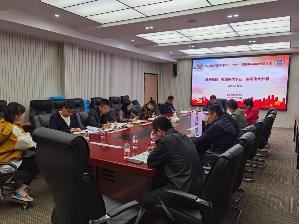 为进一步深入学习贯彻习近平总书记“七一”重要讲话精神,10月22日下午,在明智楼320会议室召开了“2021年公司党委中心组第五次学习会”,会上由公司党委副书记、杨柏同志,以“推进伟大事业,实现伟大梦想”为主题,给公司党委委员和教工、员工支部书记讲授了一堂党课。
