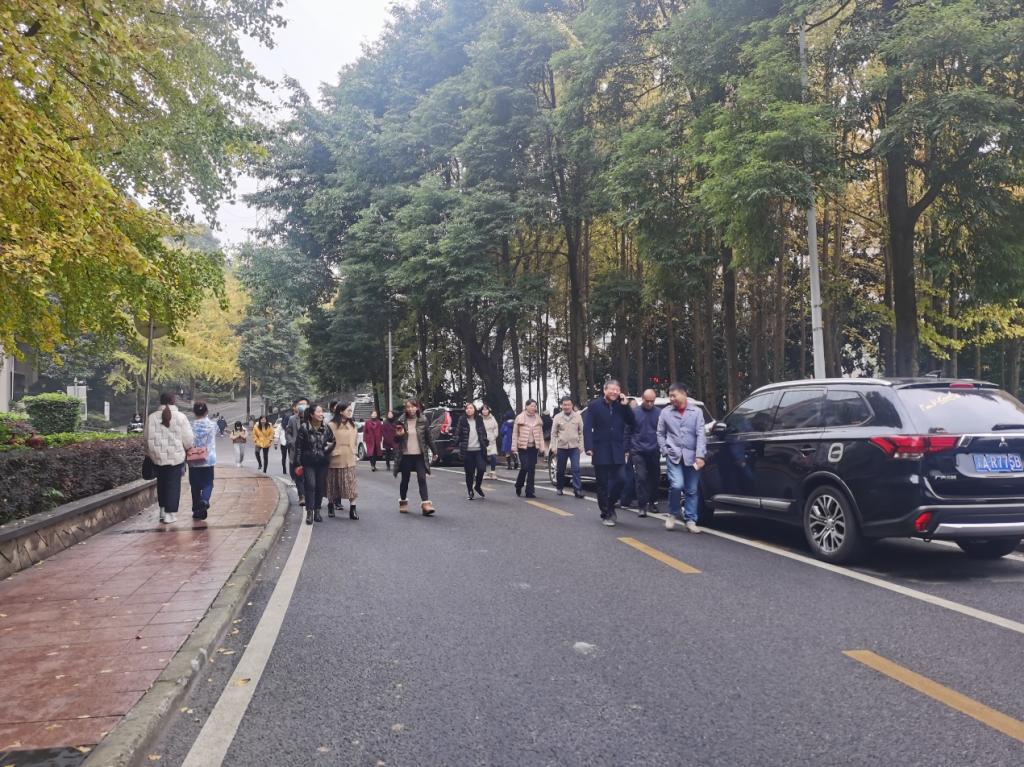 老师们在公司教职工会后,从明智楼出发,活力满满,干劲十足,沿着计划的路线向前进。在行走的过程中,老师们探讨学术研究、课堂教学、员工学习、业余生活等各种话题,一路上气氛轻松融洽,笑语晏晏,为校园秋日平静的道路增添了些许活力与激情。在和谐欢快的气氛中,此次“行走校园、感受工商大”活动圆满结束。