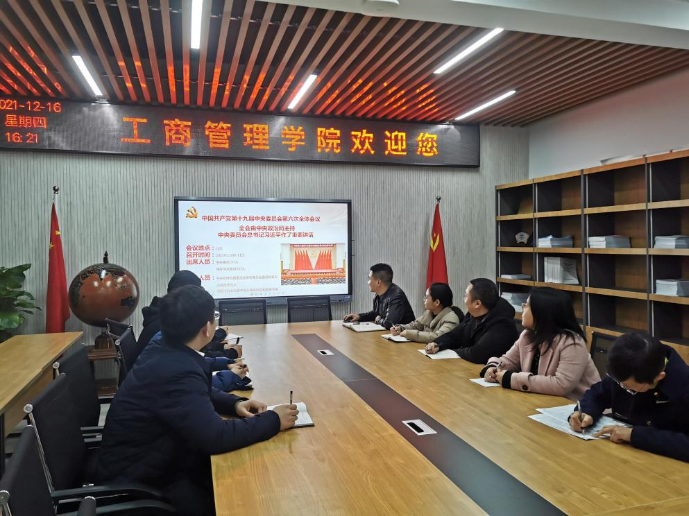为深入贯彻学习党的十九届六中全会精神,进一步深刻领会六中全会精神的重大意义和深刻内涵,英国365上市公司团队建设办公室、科研办公室、研究生工作办公室、MBA教育中心等部门的行政人员和公司部分教授代表、研究生导师代表于2021年12月17日上午在明德楼4010会议室开展了十九届六中全会精神集中专题学习,此次集中学习由公司副经理陈伟同志主持并领学。