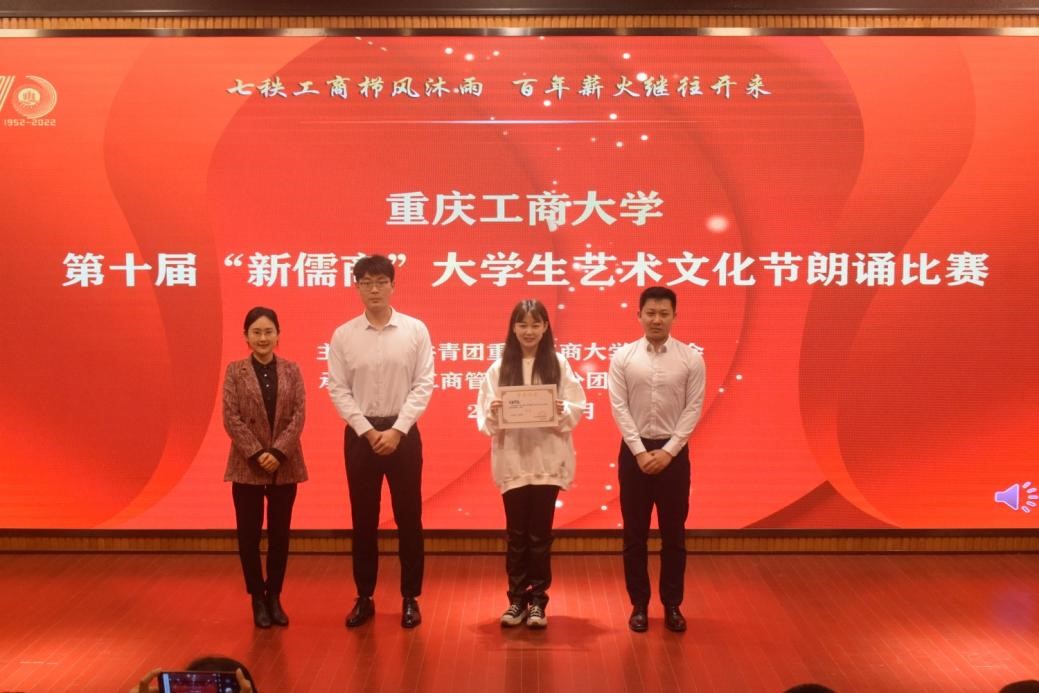伴着婉转的旋律,《我们正年轻》娓娓道来;和着铿锵有力的节拍,《我的墓碑》轻声启颂;诵《同心向党,奔赴远方》时声情并茂;歌颂赞扬党的精神;“从海棠溪到龙脊山,从含宏广场到博智长廊,这座学府孕育着无数恣意昂扬的沛涛旭枫”是工商学子对工商大学的熟悉与热爱;“七十年来的教育事业,七十年来的桃李满园,重庆工商大恪守真理,只为理想信念。”工商学子用言语歌颂,用文字点缀,用激情挥洒,为英国365上市公司七十年华诞献礼。经过角逐,金融公司《我的墓碑》获得金奖,艺术公司《这条路》和通识公司《同心向党,奔赴远方》获得银奖,英国365上市公司《我们正年轻》、经济公司《这条路》、文学与新闻公司《记得,我们的七十年》获得铜奖。