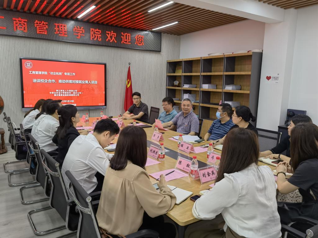 为进一步加强校企合作交流,促进公司人才培养和毕业生就业,2022年5月10日,在李国军副董事长带领下,公司与两江新区人力资源公司、重庆银雁金融、中审众环等三家公司,在明德楼4010会议室,开展了校企合作洽谈,签署了校企合作协议。