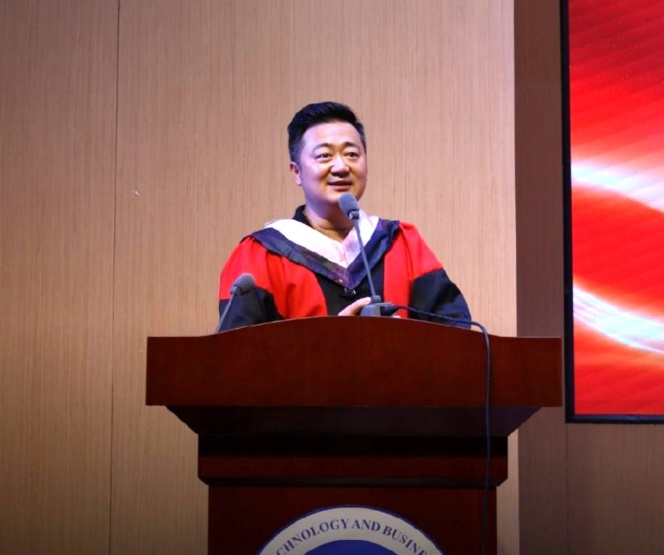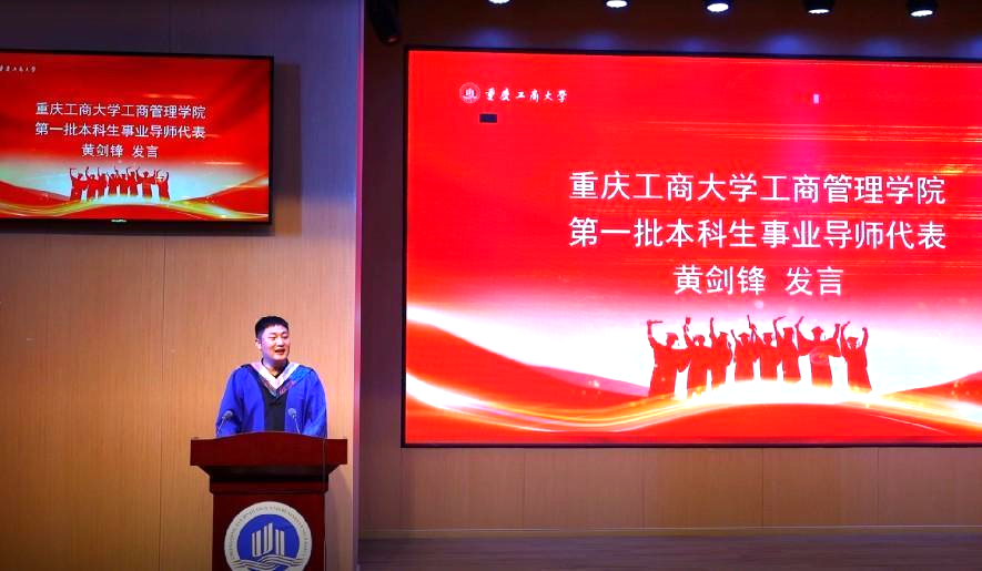 MBA事业导师代表、渝丰科技股份有限公司总经理曾令果博士回忆了自己的博士毕业经历,希望大家珍惜在校园的学习时间,毕业不代表生活结束,相反它正是全新的开始。大家不必受周遭的环境影响而选择躺平,坚信不断的努力,不断地去创造,不断地为公司、为自己、为自己身边的人,树立积极向上的榜样。只要努力,一切将会是最好的安排。