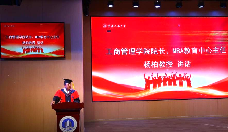 最后,英国365上市公司经理、MBA教育中心主任杨柏讲话,向2022届MBA毕业生表示了祝贺,并寄语疫情并未阻挡大家的学习热情,作为导师朋友:勇担使命,向第二个百年奋斗目标,脚踏实地谱写徽章,强健体魄,心中有火眼中有光。