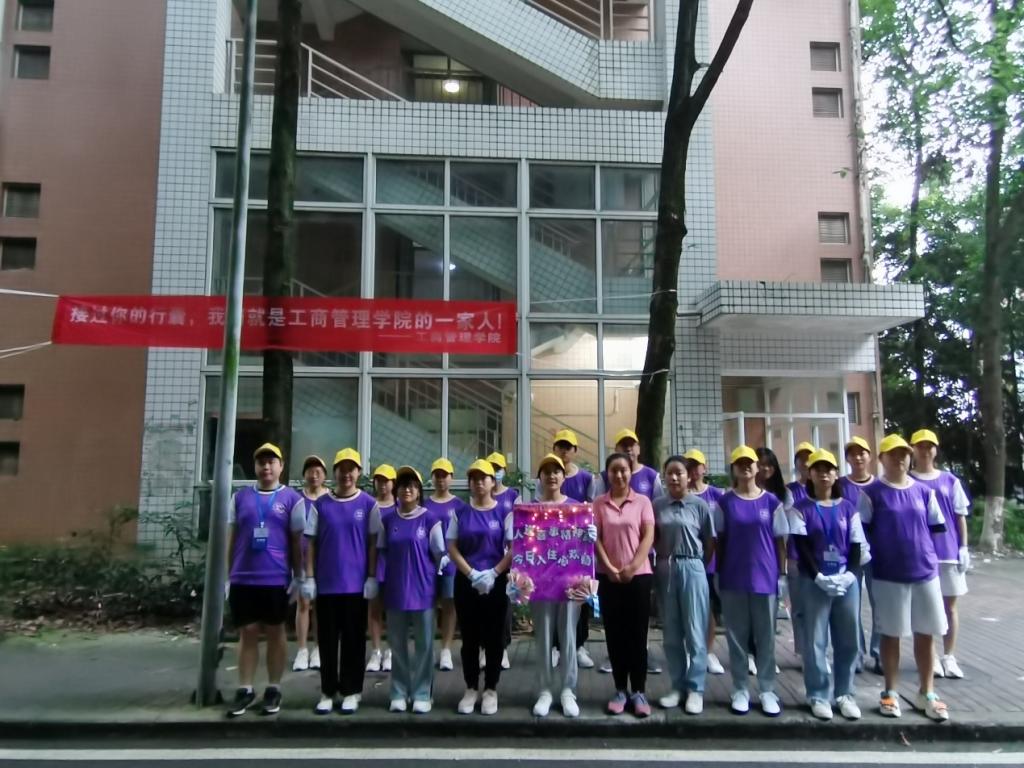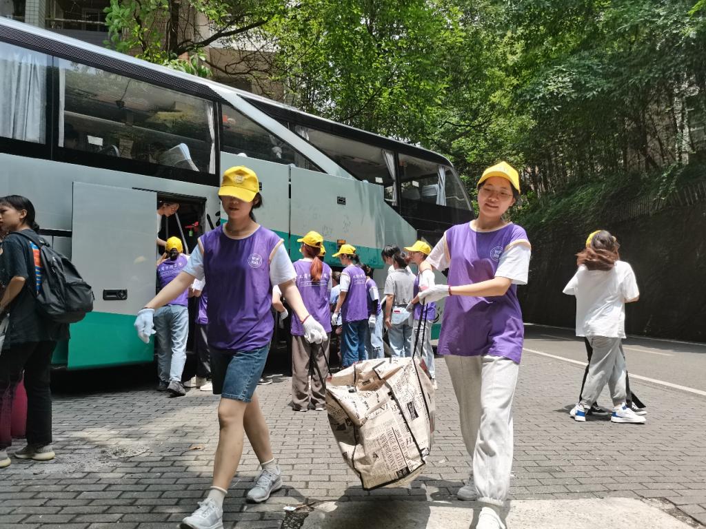志愿者们将提前准备好的欢迎海报摆放在醒目的入口,希望即将搬来的同学们能感受公司和同学们的热情和期待。在搬迁的汽车驶入校园后,志愿者们全体出动:引导同学有序排队、运送行李、整理宿舍,购买需要的物资等。对于21级的同学们来说,在初入新环境茫然不知去向何方时的一句细语提醒,在搬运行李心累力竭时的一个帮忙的动作,都彰显了学长学姐们的热情温暖以及志愿者们的责任担当。志愿者们身着紫色院服、佩戴着黄色院帽,在搬迁现场形成一道亮丽的风景线,被大家称为最可爱的“小紫人”。志愿者们的默契配合、勇于担当,减轻了同学们的搬迁负担,提高了搬迁效率。2021级的同学们也顺利完成了本次宿舍搬迁行动。