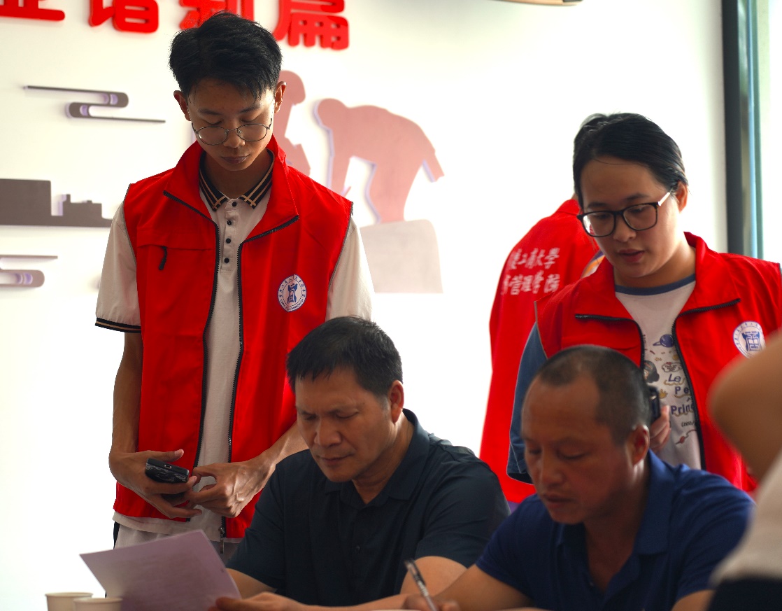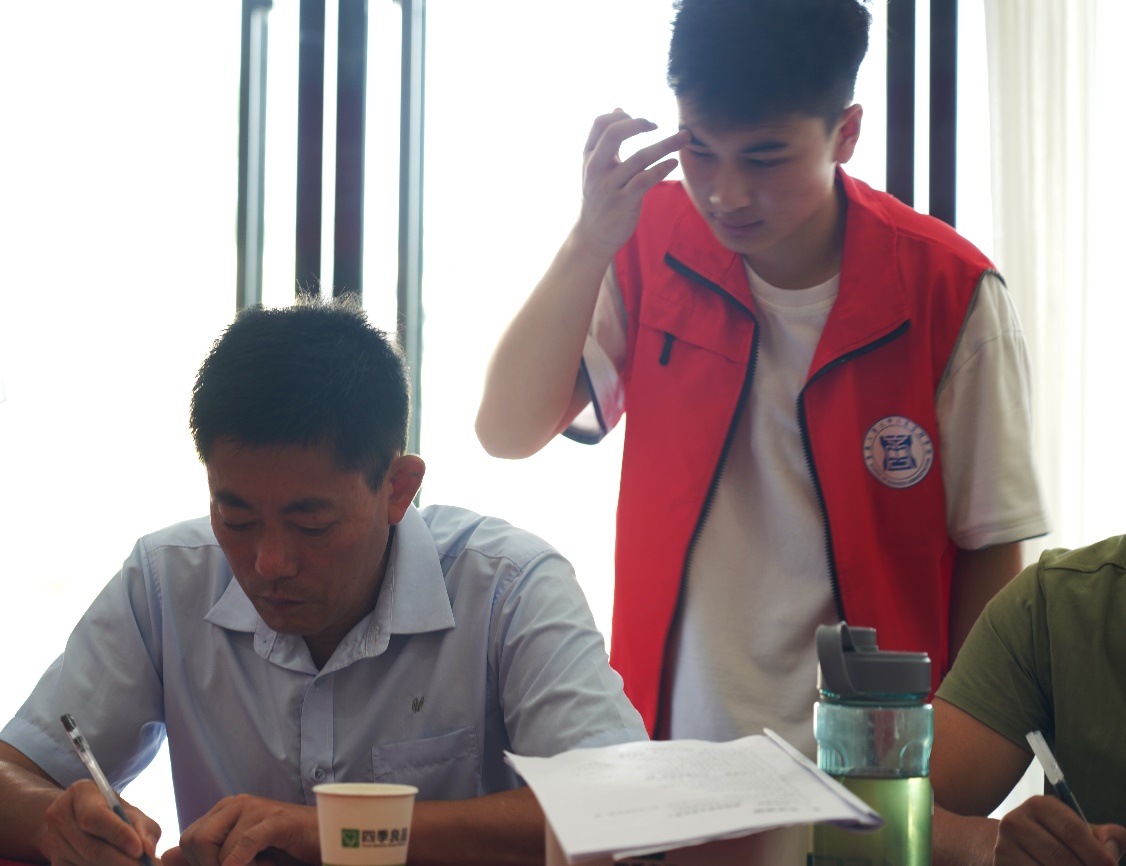 图为观察团成员辅助填写问卷 杜佳桁 摄