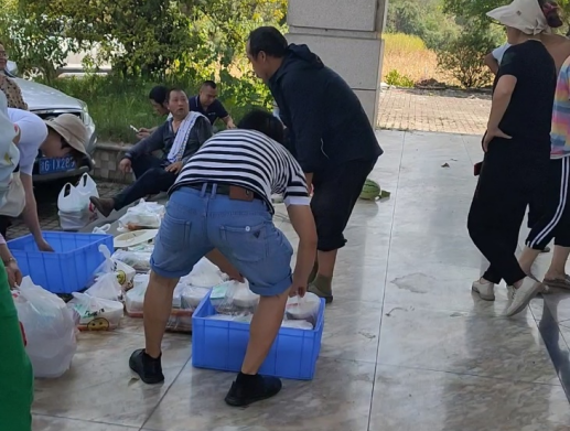 在这过程中,没经验的刘欣怡不小心受了伤,但是没有时间让她疼痛,忍痛继续自己的工作。她与其他志愿者们一直巡山到中午,山上停水停气,不定时还停电,但社区工作人员安排了人去山下把社会爱心人士送的饭菜拉上来,志愿者们领到饭菜,在阴凉处席地而坐就开始了简短的午饭。