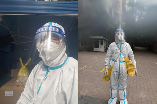 教工一支部书记郑月龙同志积极响应回龙湾社区号召,身先士卒,跟随医护人员,对封控楼栋的混阳人群挨家挨户上门进行核酸信息采集。