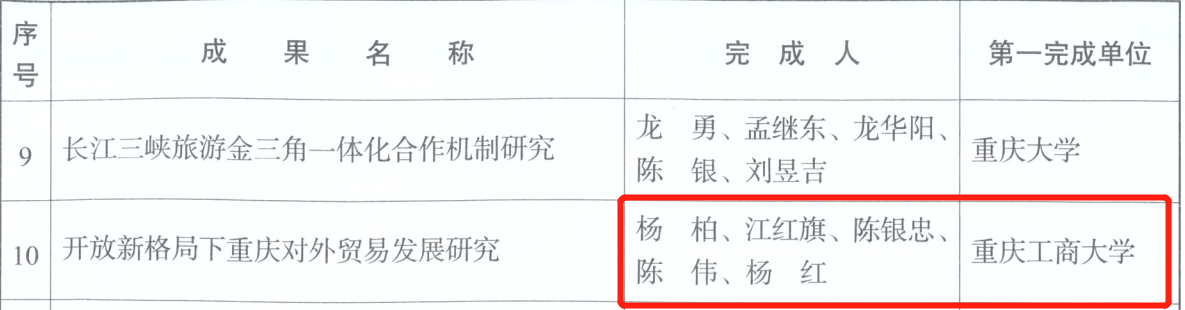 2020年12月,公司经理杨柏教授团队撰写的研究报告《开放新格局下重庆对外贸易发展研究》获第七届重庆市发展研究奖三等奖。