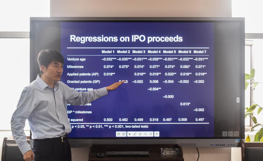 Taiyuan Wang教授从核准授予专利后申请专利的积极影响、申请与授权专利两者积极影响的区别以及申请与授权专利对年轻企业较大影响三方面来进行以上市募集资金为样本的讲座。他分析了当前高科技企业前沿技术落后和多数学者更偏向于申请专利而不是授权专利的现状,特别对在IPO过程中申请专利与授权专利的区别进行了详细的解读,并列举了详实的例子来说明不同专利对小型以及新型企业的影响。