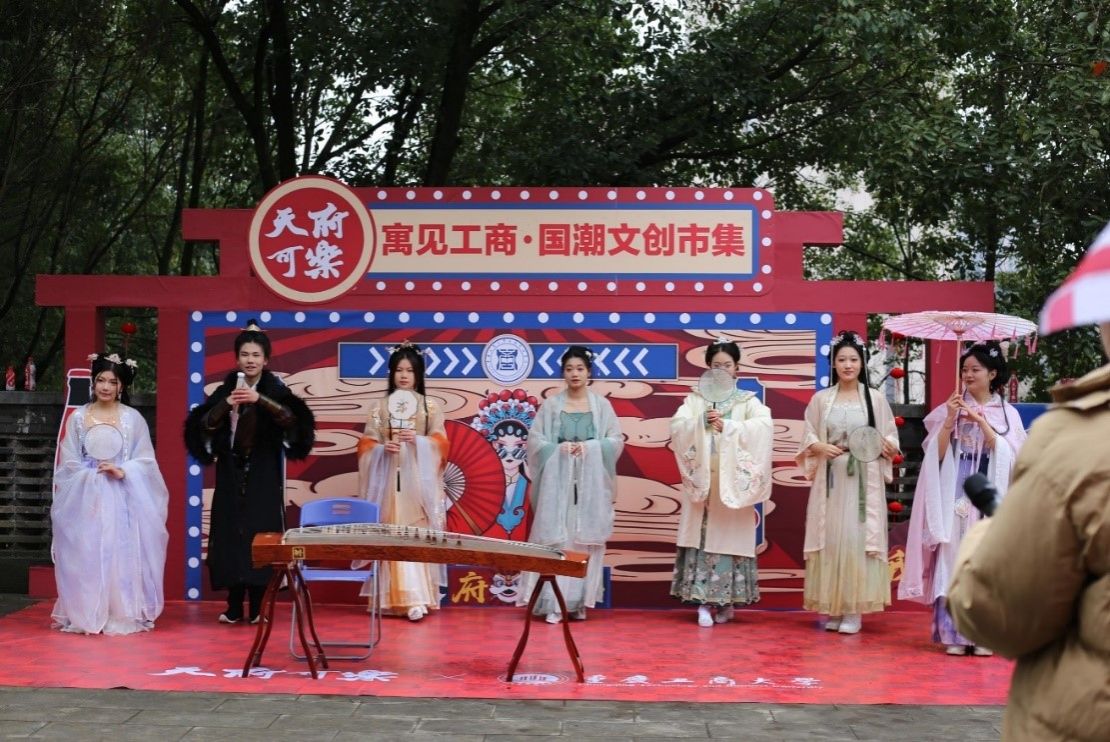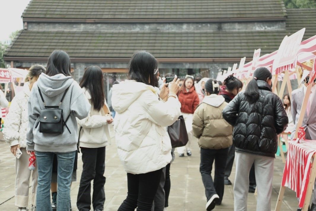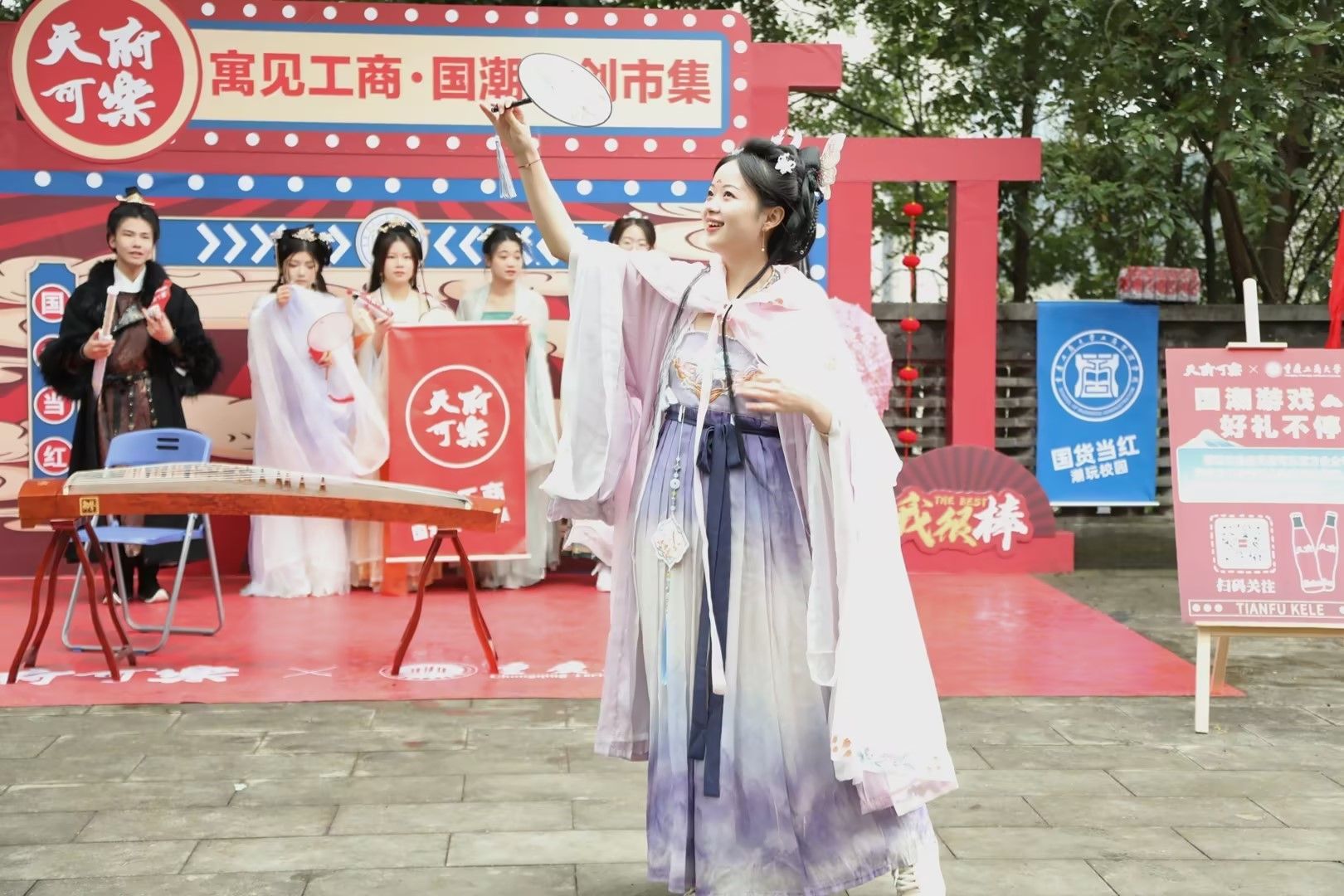 此外,集市现场还设置了投壶及击铜钱游戏、古筝表演、汉服走秀、古典舞蹈等活动形式,让同学们在丰富多彩的活动体验中感受到中华文化的深厚底蕴和大国风姿的独特韵味。国风国潮创意集市活动提升了工商学子的文化品位和艺术修养,展现了青年老员工的文化创新和创造活力,助力形成积极健康的员工社区文化。