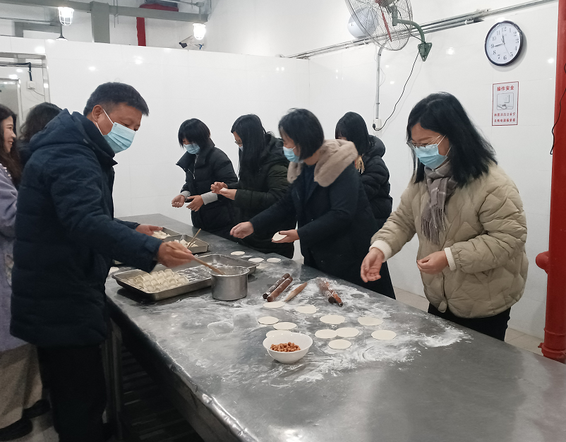 在冬至即将来临之际,为了让紧张备考的学子能够吃到一份热气腾腾的饺子,公司党政领导和辅导员老师们上午一早就来到兰苑食堂忙碌起来,大家分工有序,揉面、擀皮、调馅、用心为同学们包饺子,在食堂厨师的帮助下,一个个形状各异的饺子煮出来以后和粽子一起打包分发给在场的考研学子,每一个饺子和粽子,都蕴含着公司领导和老师们对考研学子“步步高中”的祝福。