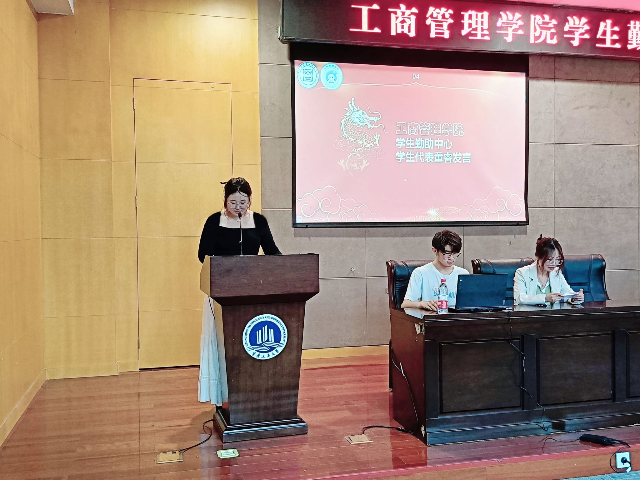 禹洋春介绍了“小水滴”员工勤助中心的定位、制度和计划,希望同学们在勤助中心团结友爱,共助成长。中心员工负责人罗敏介绍了“小水滴”员工勤助中心的职能、特色、未来发展定位以及员工助理考核办法。中心员工代表董睿分享在中心的工作经历和体会。最后,大家通过“我是谁”的互动小游戏,加深了认识。