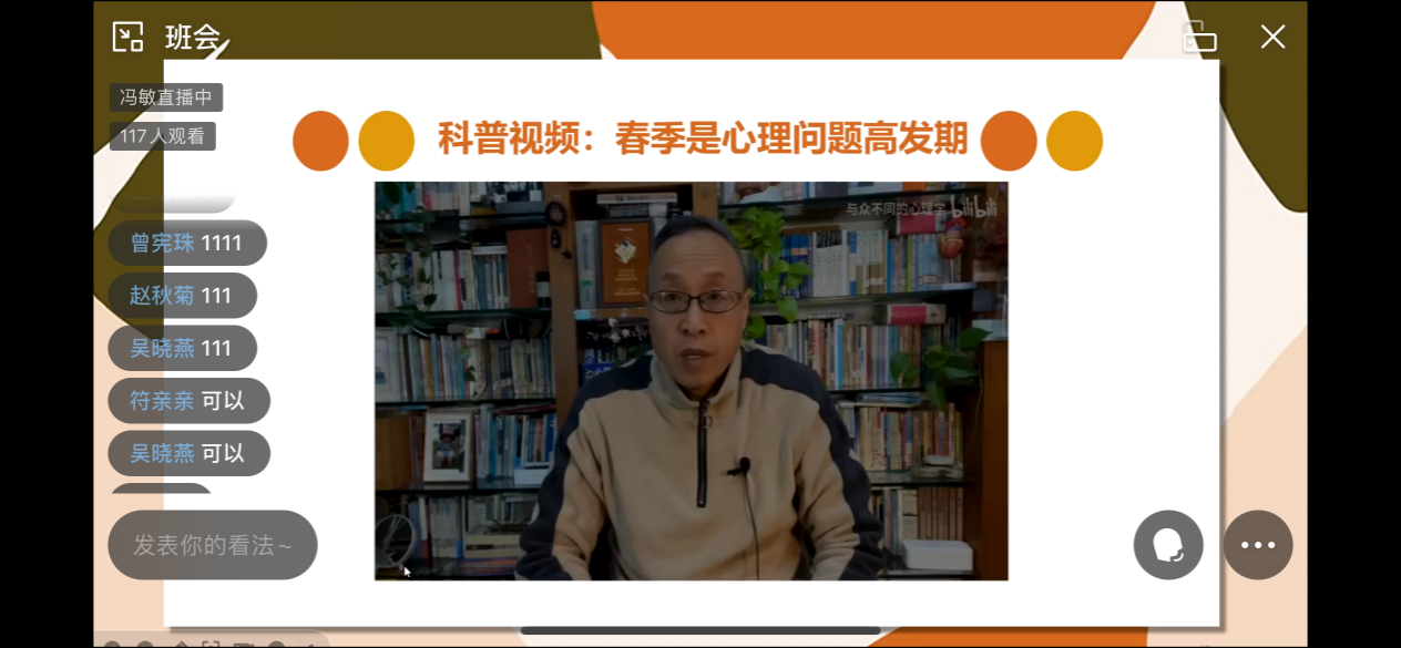 本次心理主题班会围绕“春季心理问题预防与处理”主题,采用专家讲述、视频科普等多样形式开展,通过“春季是心理问题高发期”、“正确认识抑郁症”以及“利用校内外心理资源”等环节,加深员工对春季心理问题特别是“抑郁症”的了解,进一步强化员工“积极求助意识”,引导员工合理利用校内外心理资源,做好春季心理问题的预防与处理。