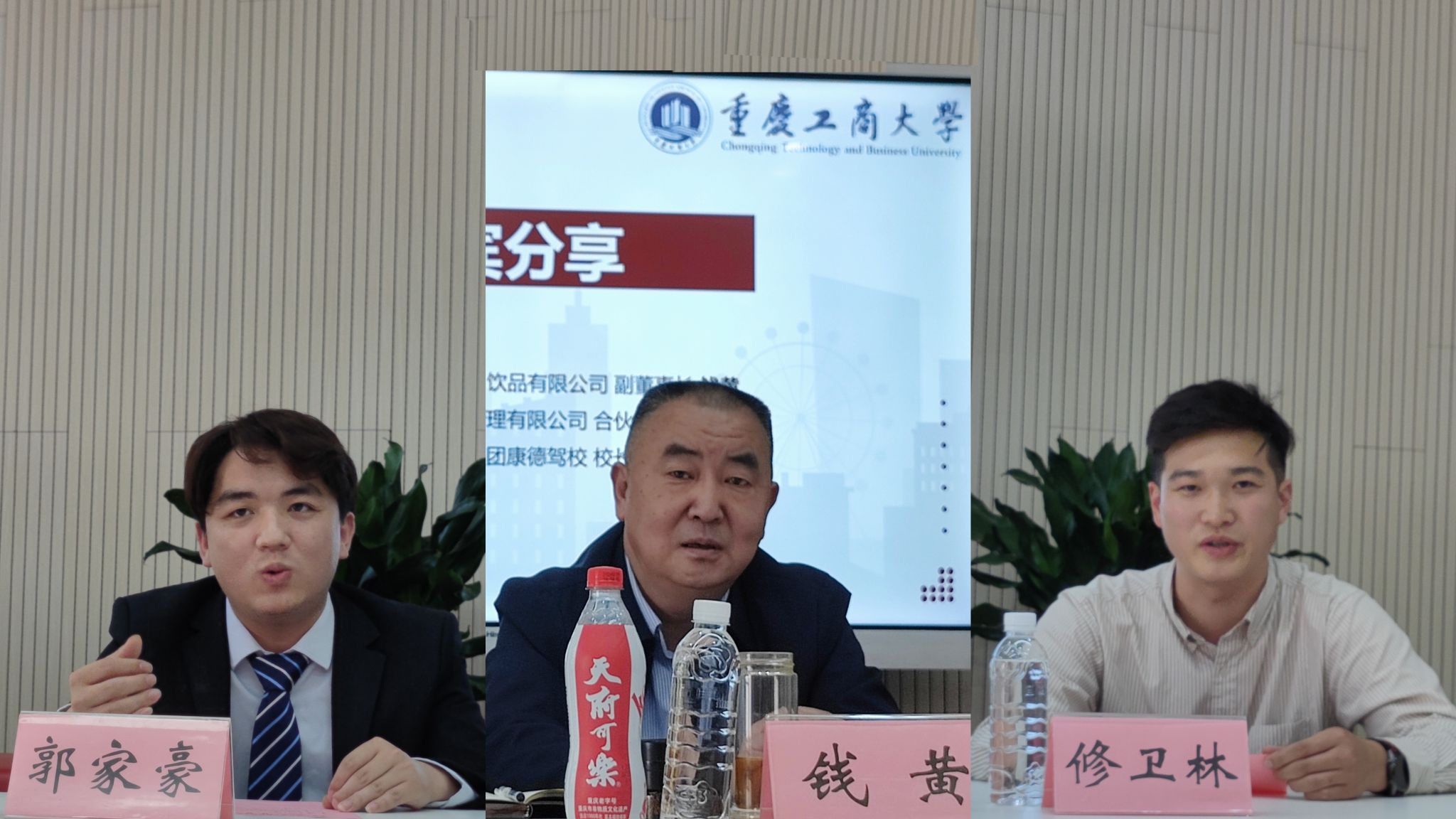 论坛上,嘉宾们分别分享自己的创业经验。天府可乐(重庆)饮品有限公司副董事长钱黄向同学们讲述了他四十年如一日钻研天府可乐的经历,展现了创业的艰辛,告诫同学们创业需要勇气与毅力,同时,钱董事长引入近期习近平总书记到访重庆的话题,鼓励员工们,作为新时代的新青年,面对如今百年未有的大变局,要用于奋斗,敢于创新,在实现中国式现代化建设的伟大进程中青年人才“时代有我”的使命担当。重庆麻爪爪餐饮管理有限公司合伙人修卫林以自身的学习经历为切入点,向同学们分享了自己创业过程中遇到的挑战,引导同学们以更加积极的心态解决成长过程的挫折。重庆青衫行驾培集团康德驾校董事长郭家豪以自己校园经历为例,号召同学们要勇于试错,在试错的过程中找准自己的赛道,发挥自己的优势,并始终专注于此,一定会创造出属于自己的一片天。