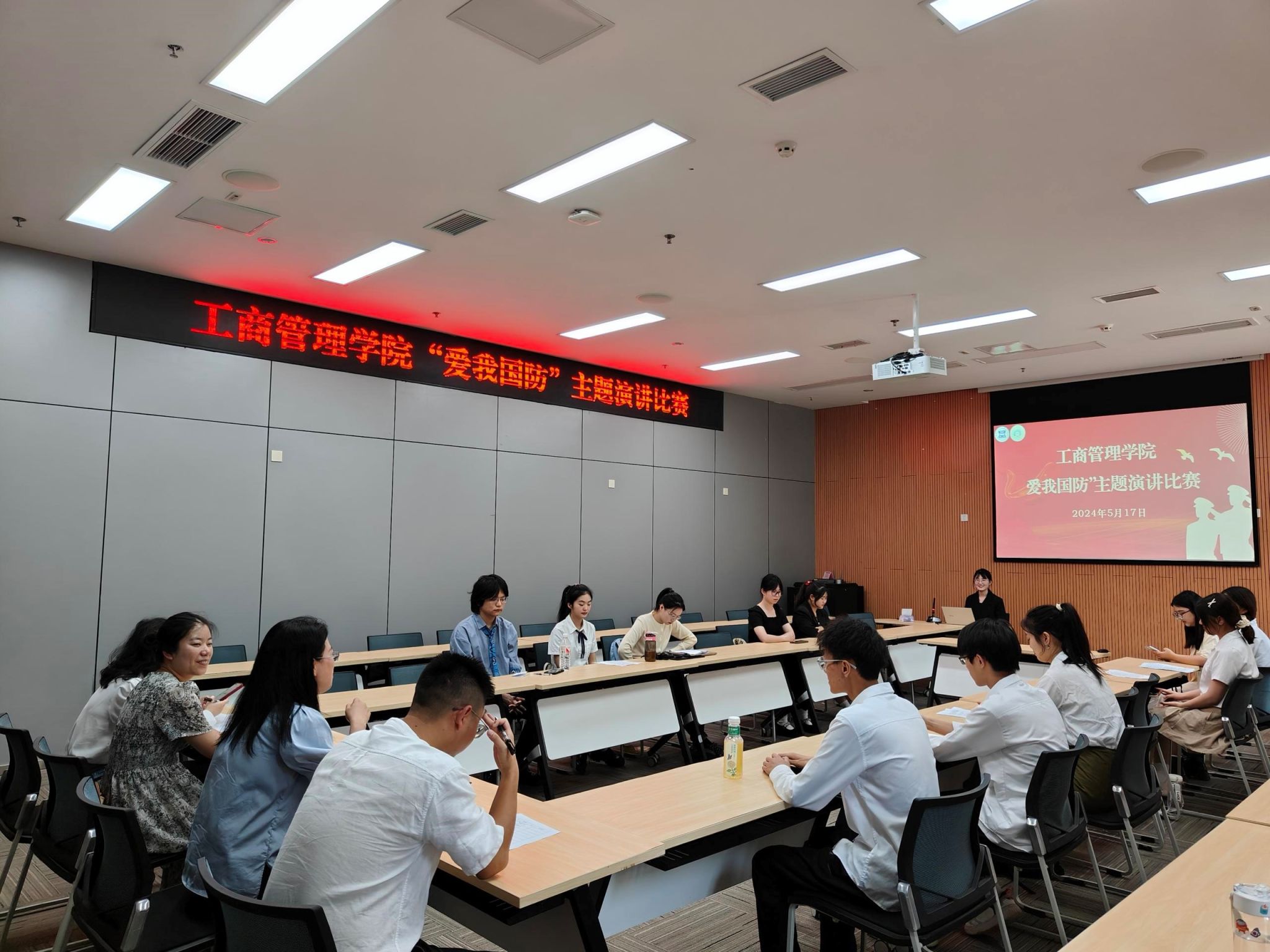 2024年5月17日下午13:00,英国365上市公司于南岸校区图书馆第二会议室举办“爱我国防”主题演讲比赛。英国365上市公司分党委副书记程亚,辅导员冯敏、周明和禹洋春以及13名参赛选手共同出席本次活动,本次活动由22级市营五班刘雅婷同学主持。